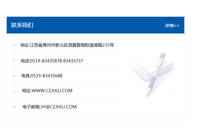 地址:常州市新北區友邦商務大廈1幢16、17層  電話:0519-85101652  傳真:0519-85112595  郵編:213022  網址:www_cz-jiayue_cn.jinjianghome.com  郵箱:xiajifengaa@163.com